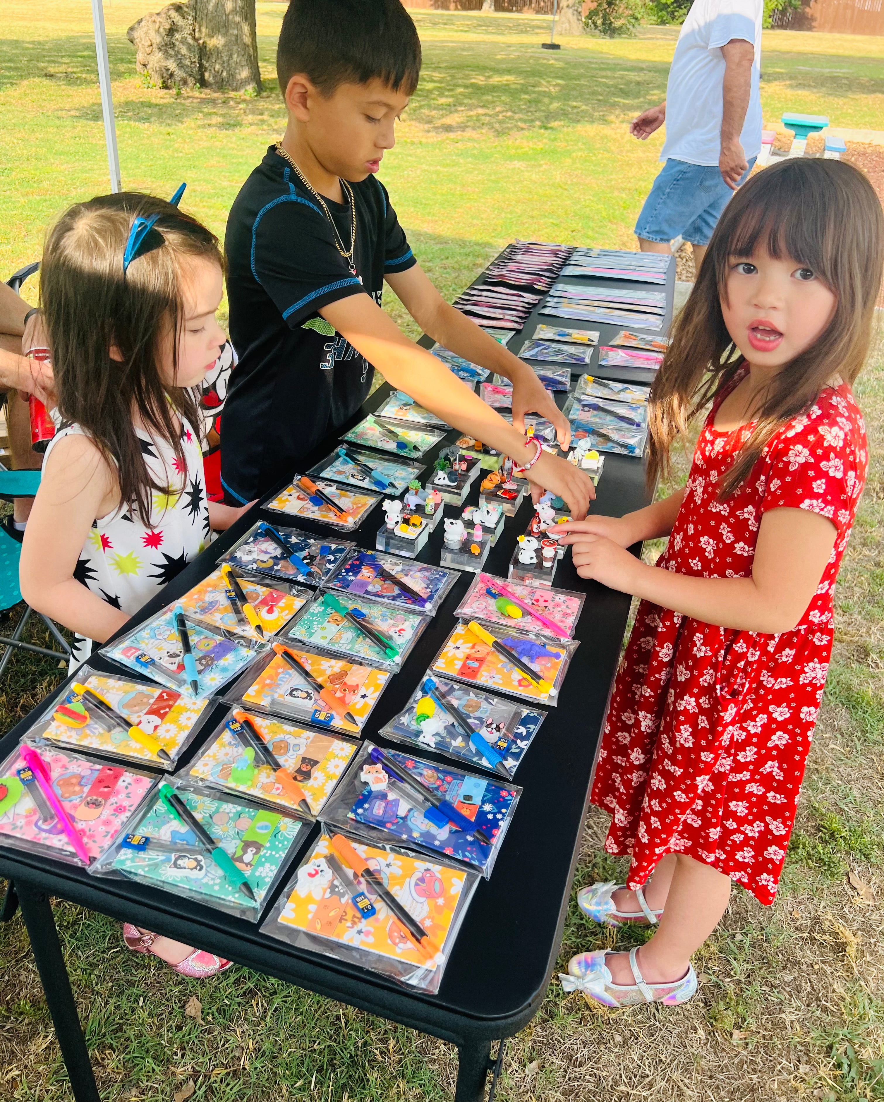 Our kids—Michael, Miko, Naomi, and Yumi—already had a passion for creating cute stationery. They loved designing paperweights and notebook packets, expressing their creativity and teamwork. We started signing them up for local vendor events so they could learn communication, marketing, sales, promotion, and a strong work ethic. I taught them about money: how to earn it, save it, and invest it.